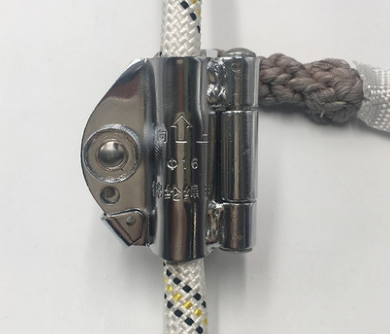 抓绳器是风电系统常用的高空作业辅助器材,它有滑块、拉力装置、扣门等部件,滑块的材质有合金钢和不锈钢两种,具有硬度强、耐腐蚀、耐高温的特点,滑块不锈钢的合金钢拉力为15KN。
